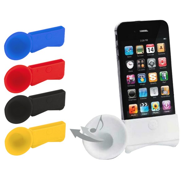 Altavoz soporte de diseño retro con cuerpo en suave silicona de llamativos colores.