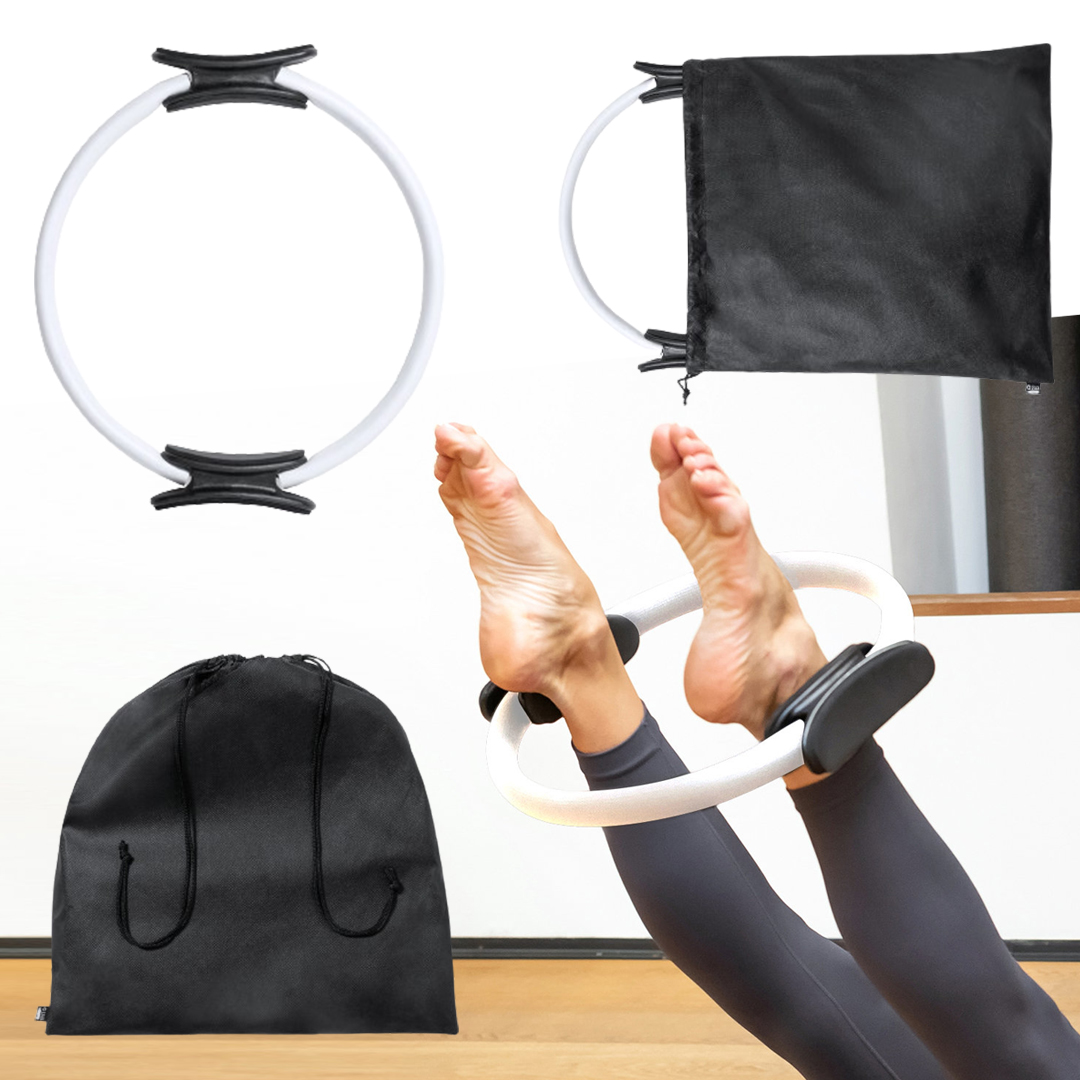 Aro para ejercicios fabricado en resistente fibra de vidrio con recubrimiento en EVA. Asas ergonómicas en ABS, con manual de instrucciones en español e inglés. Presentado en funda de non-woven RPET, con cierre de cordón y distintivo RPET en etiqueta. El material RPET se elabora a partir de plástico reciclado, para así fomentar la reutilización de residuos plásticos y ayudar a la sostenibilidad del planeta. Funda Non-Woven RPET