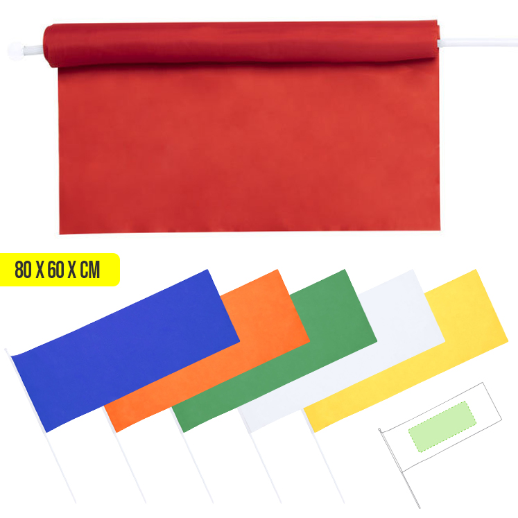 Banderín de poliéster de diseño XL -tela de 80x30 cm- en extensa gama de vivos colores. Con asta en color blanco