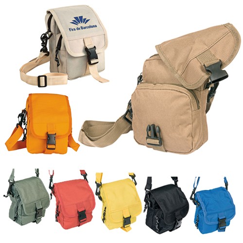 Bandolera todo terreno en resistente poliéster 600D de variados colores y con cierre de cremallera con cinta en tirador para fácil apertura. Solapa con cierre de clic y bolsillo de cremallera en frontal con cinta en tirador. Accesorio para cinturón en parte posterior y cinta para hombro a juego con cierre de mosquetón ajustable.