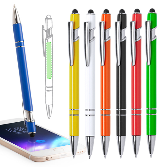 Bolígrafo puntero de mecanismo pulsador y original diseño. Acabado en variada gama de colores brillantes, con accesorios cromados y clip metálico. De cartucho jumbo y tinta azul. Carga Jumbo