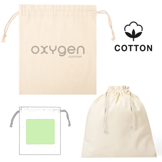Bolsa de línea nature en material 100% algodón de 105g/m2. Tamaño 25x30 cm, de acabado cosido y con cordones autocierre de algodón.