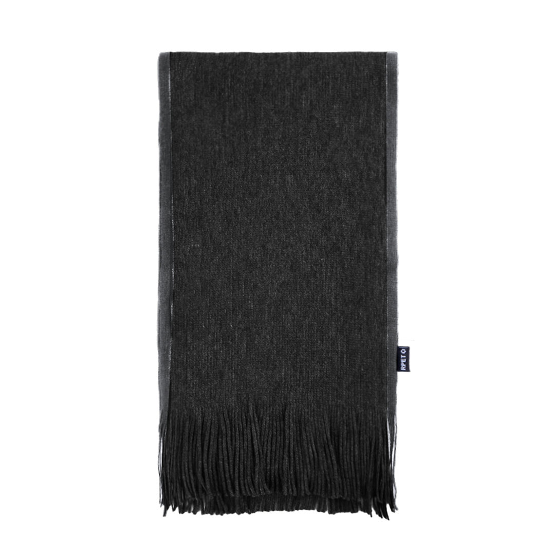 Suave y cálida bufanda confeccionada en cálido poliéster RPET. Fabricada en elegantes colores bitono con bordes en distinto color, terminación en flecos. Con logotipo RPET en etiqueta. Presentada individualmente en caja negra. El material RPET se elabora a partir de plástico reciclado, para así fomentar la reutilización de residuos plásticos y ayudar a la sostenibilidad del planeta.