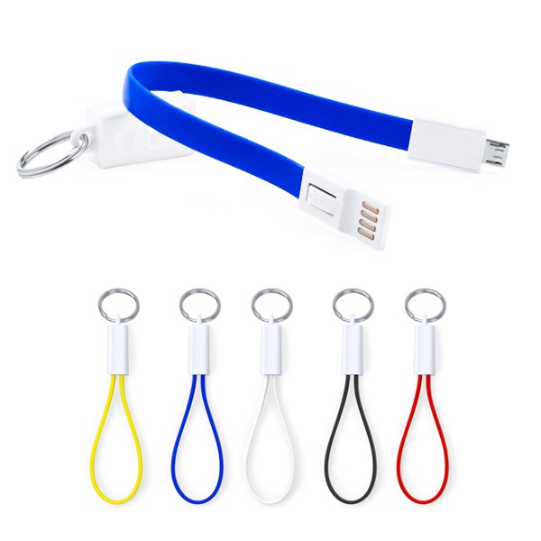 Llavero-cable cargador. Con conexión Micro USB y presentado en atractiva caja de diseño. Conexión Micro USB 5V DC 1A
