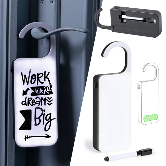 Colgador para mensajes con brillate luz interior (25 LEDs), para que todo el mundo pueda ver tus mensajitos. Botón de encendido ON/OFF, con rotulador de tinta negra y borrador. Alimentación a pilas (3xAAA no incluidas) y compartimento para guardar el rotulador. Presentada en atractiva caja de diseño. Luces Led. Rotulador y Borrador Incluidos. 3 Pilas AAA No Incluidas