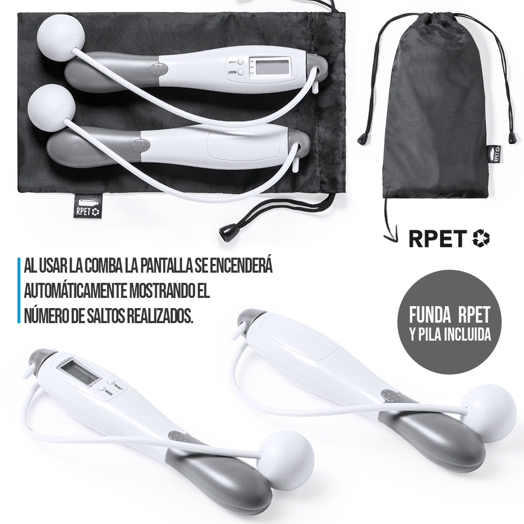 Comba digital fabricada en resistente ABS. Con mangos de sujeción ergonómicos y pantalla LCD con botones de ajuste. Presentada en funda de poliéster RPET con cierre de cordón, elaborada a partir de plástico reciclado para así fomentar la reutilización de residuos plásticos y contribuir a la sostenibilidad del planeta. Etiqueta distintiva RPET en la funda. Alimentación a pilas (de botón incluidas). Funda Poliéster RPET. Pila Botón Incluida