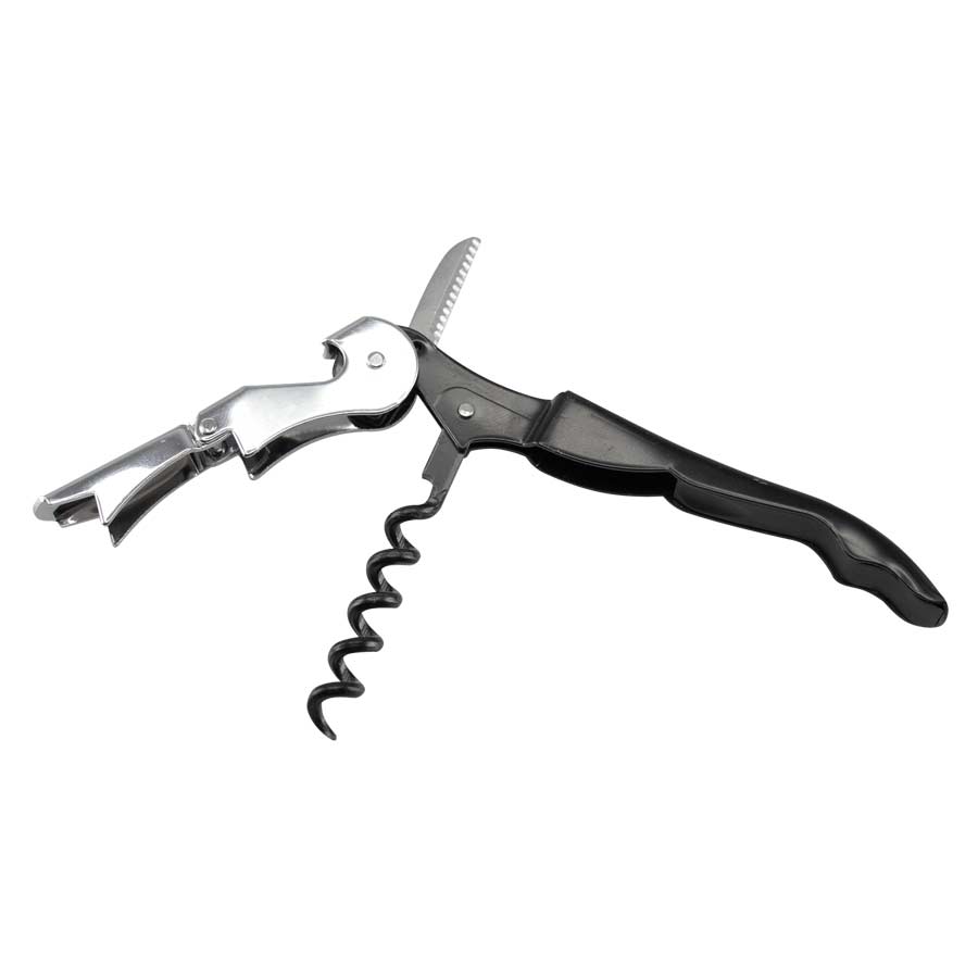 Descorchador profesional "Sommelier" de 2 tiempos de Acero Inoxidable con cubierta y tirabuzón de teflón. Presentación en caja de cartón plateada.