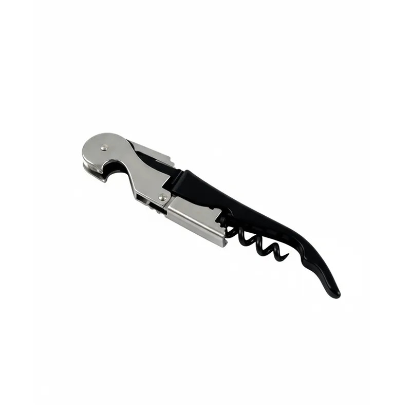 Destapador metálico tipo sacacorchos con diseño ergonómico. Fabricado en acero inoxidable combinado con acero al carbono, lo que garantiza resistencia y durabilidad incluso en uso frecuente. Cuenta con sistema de palanca doble, abridor de botellas y navaja, todo en un solo cuerpo compacto. Es ideal para uso en restaurantes, bares, eventos o para quienes buscan un accesorio práctico y profesional para abrir vinos y cervezas con facilidad.