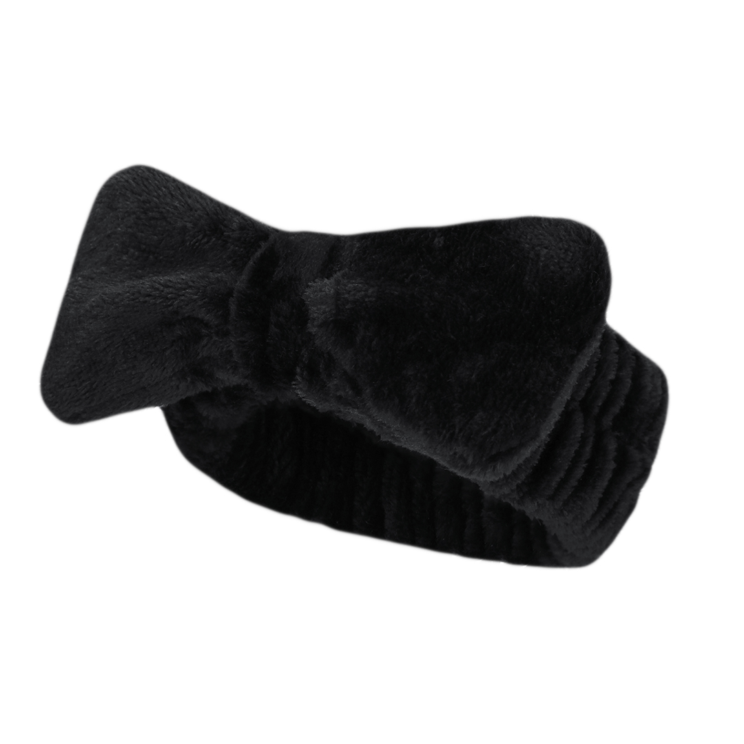 Diadema en forma de cinta para el cabello, adornada con un elegante lazo. Confeccionada en suave y elástico poliéster, ideal para facilitar la rutina de lavado facial.
