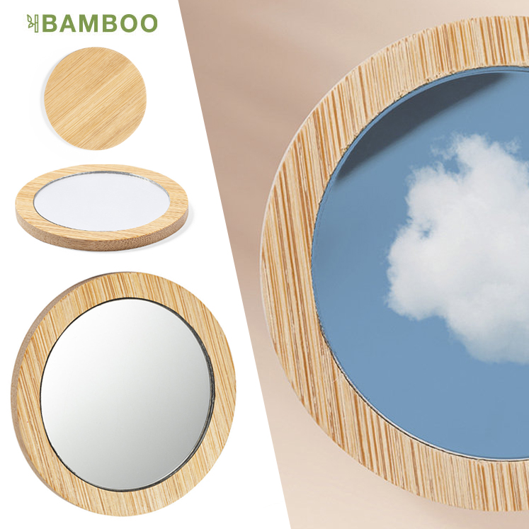 Espejo 1X de línea nature fabricado en bambú. Presentado en caja individual de diseño eco.