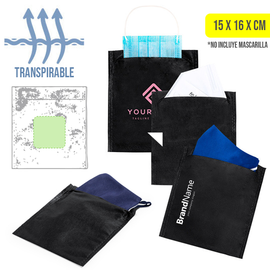 Funda multiusos en non-woven de color negro y acabado termosellado. De tamaño compacto e ideal para impresión.