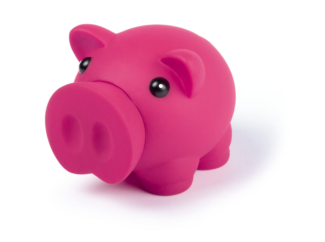 Hucha cerdito con suave cuerpo de acabado goma en vivos colores.
