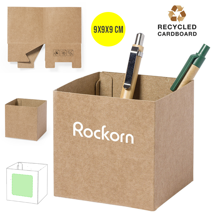 Lapicero de línea nature fabricado en resistente cartón reciclado de 430g/m2. Presentación plegado, con instrucciones de montaje en la base.