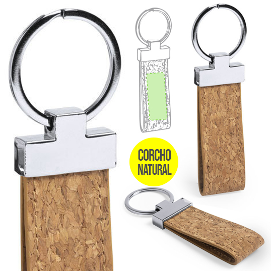 Llavero de línea nature en corcho natural con detalles en metal. Presentado en bolsita individual auto-cierre con cartón de diseño eco.