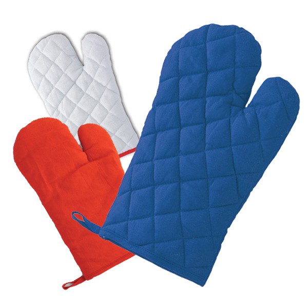 Manopla de cocina de alta calidad en suave material 100% algodón de vivos colores. Con una cara lisa especialmente diseñada para impresión y cinta para colgar. Una Cara Lisa para Impresión