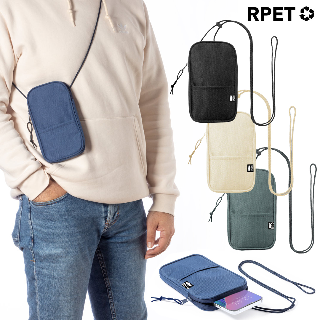 Clásico portamóvil de línea nature, fabricado en resistente poliéster 600D RPET. Compartimento principal con cierre de cremallera invisible a juego y tirador de cordón. Con cinta bandolera a juego, bolsillo exterior, e interior forrado. Disponible en variada gama de colores, con etiqueta RPET en bolsillo exterior. El material RPET se elabora a partir de plástico reciclado, para así fomentar la reutilización de residuos plásticos y ayudar a la sostenibilidad del planeta.