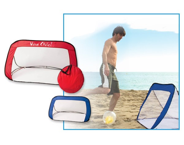 Divertida portería plegable de vivos colores en combinación de resistente nylon y tejido de redecilla. Con cómoda bolsa de transporte con asas. Plegable. Funda Poliéster