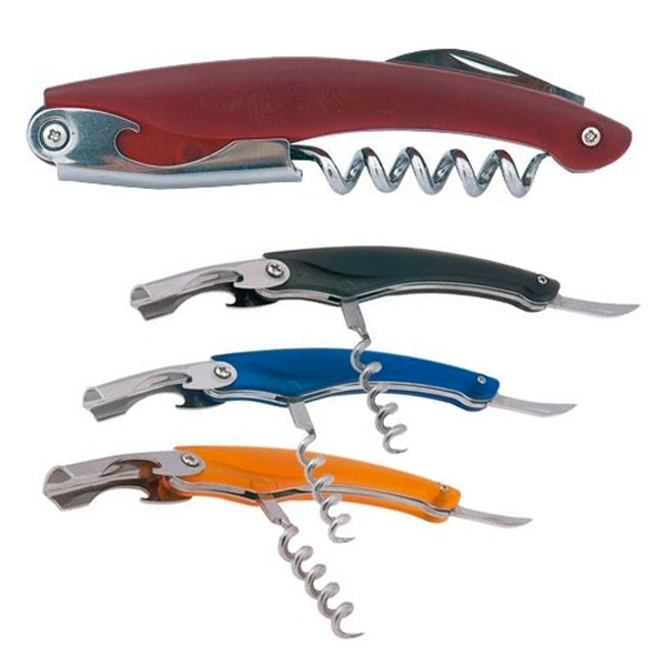 Clásico sacacorchos con accesorios de acero inox. Incluye cortacápsulas y abridor. Presentado en caja individual.