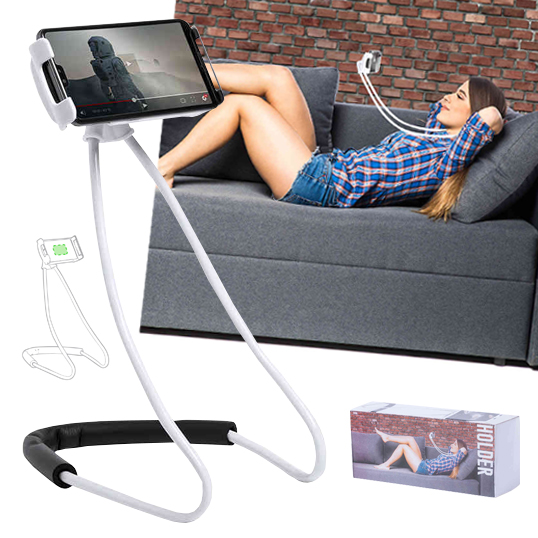 Soporte flexible multiusos para dispositivos móviles. De diseño ergonómico y flexible, muy versátil y cómodo de usar. Soporte para dispositivo móvil de excelente fijación, con acolchado antideslizante. Presentado en atractiva caja de diseño. Flexible