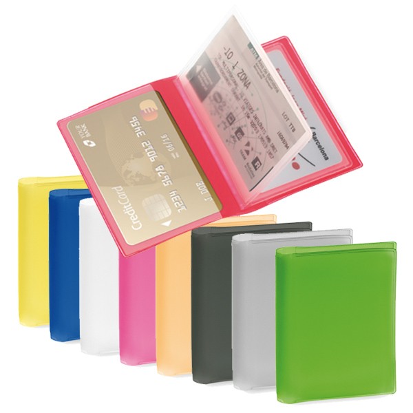 Tarjetero con acabado en PVCendivertidos colores y 6 compartimentos interiores en resistente PVC transparente. 6 Compartimentos