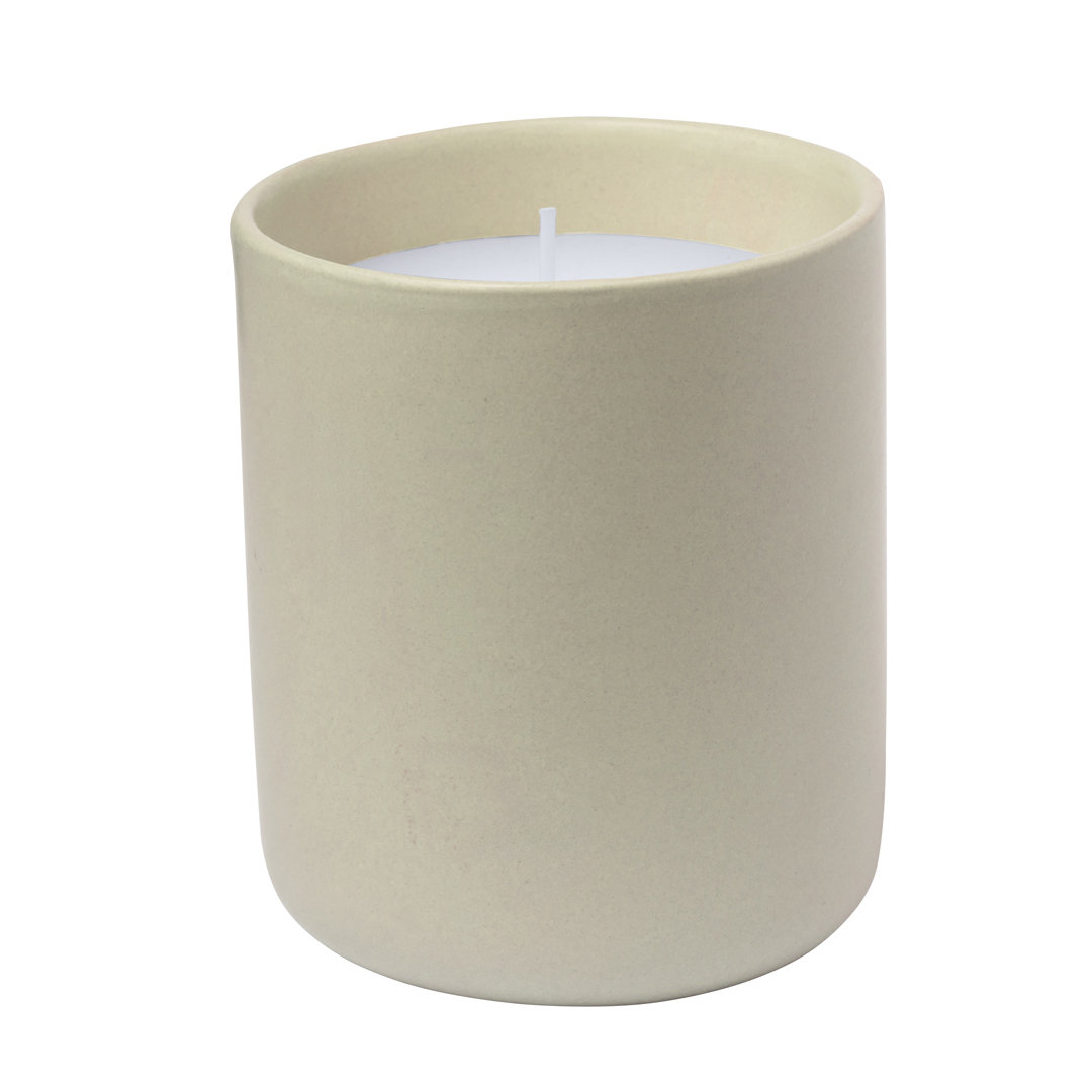 Vela aromática en tarro de cerámica con aroma a vainilla. Disponible en cristal de elegantes colores de tonos naturales. Presentada en caja individual diseño kraft. Aroma Vainilla