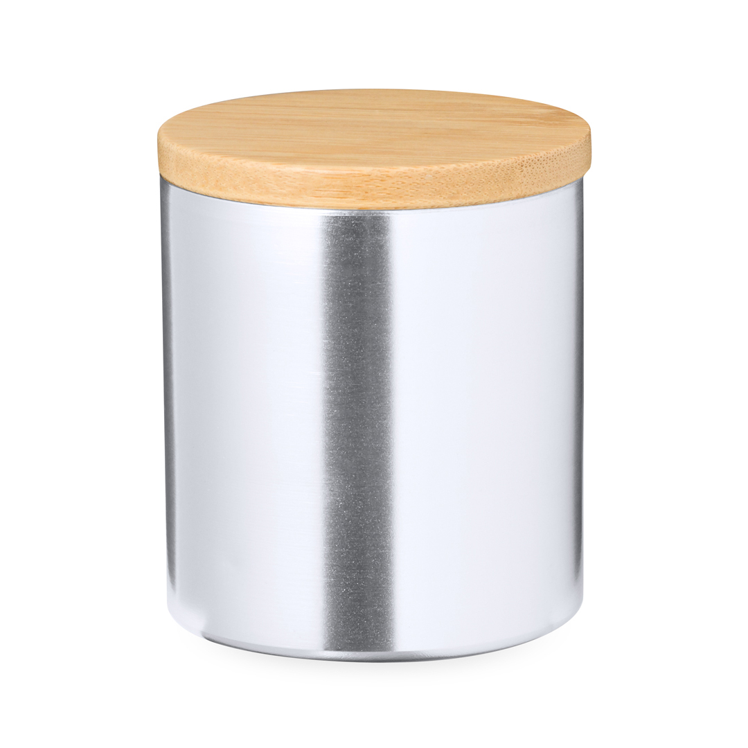 Vela aromática con perfume vainilla. Presentada en tarro de metal con tapadera fabricada en bambú. Tarro disponible en variada gama de colores de acabado metalizado. Presentada individualmente en caja de diseño kraft. Materiales como el bambú fomentan la utilización de materias primas naturales, reduciendo las emisiones contaminantes. Proviene de una planta de gran resistencia y versatilidad, con crecimiento y regeneración rápidos, siendo una excelente alternativa al uso de madera tradicional. Aroma Vainilla