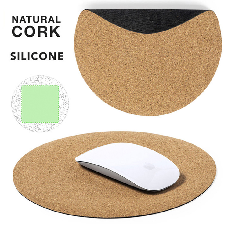 Alfombrilla de ratón línea nature fabricada en corcho natural. Con forma circular y base antideslizante en silicona. Antideslizante