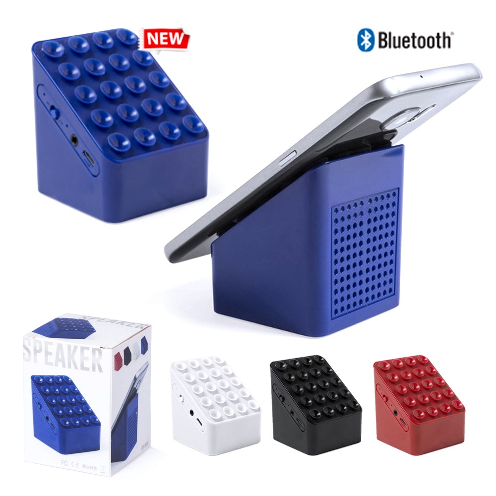 Original altavoz soporte para smartphone con conexión Bluetooth®, de diseño minimalista en vivos colores y ventosas de alto poder de sujeción. Con conexión Bluetooth® 3.0, ofrece 3W de potencia, entrada auxiliar de línea mediante conexión jack de 3,5mm y función manos libres. Incluye cable de carga mini USB, cable auxiliar jack de 3,5mm y viene presentado en atractiva caja de diseño. Con banda antideslizante en la base. Conexión Bluetooth. Potencia Sonido 3W. Batería 400 mAh