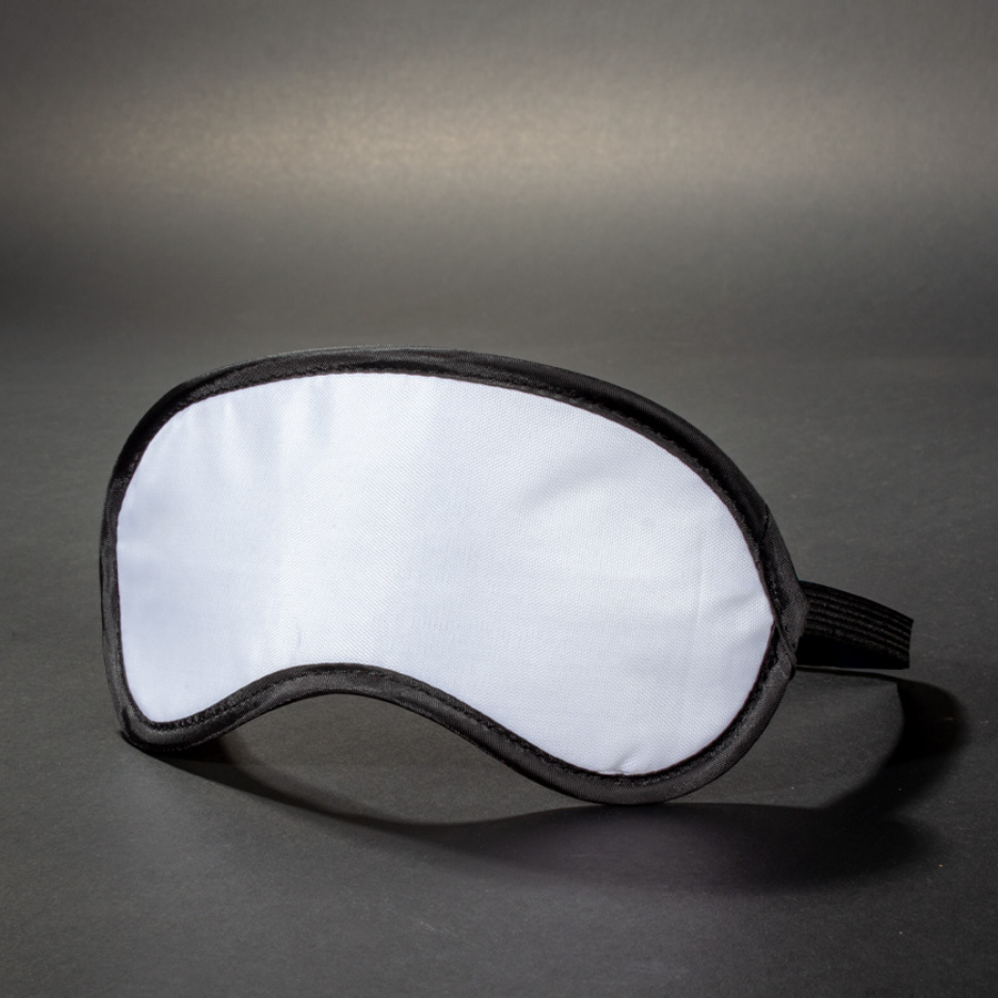 Antifaz (máscara de descanso) de Poliéster blanco con base y elástico negros. Ideal para Sublimación.