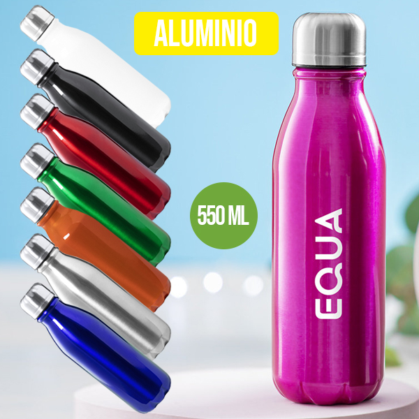Bidón de aluminio de 550ml de capacidad. Fabricado en resistente aluminio libre de BPA. Disponible en variada gama de colores. Presentado individualmente en una atractiva caja de diseño. 550 ml