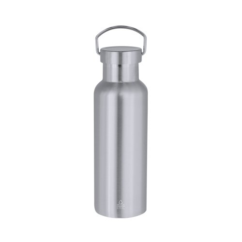 Bidón térmico fabricado en Acero Inoxidable Reciclado de doble pared y 500 ml de capacidad. Acabado en vivos colores con efecto metalizado. Tapón a rosca equipado con asa de trasporte. Incluye distintivo Acero Inoxidable Reciclado. El acero es uno de los materiales más demandados y que puede encontrarse casi en todas partes, desde productos de uso diario a grandes construcciones. Con innumerables propiedades, entre las que cabe destacar la durabilidad y su alto grado de reutilización, convirtiéndolo en una alternativa muy valorada en soluciones de sostenibilidad. Debidamente tratado, permite obtener nuevos recursos de infinita utilización. 500 ml