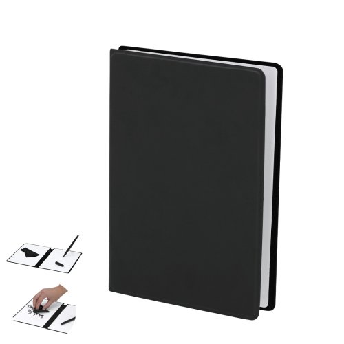 Bloc notas confeccionado en suave y elegante PU. Incluye una pizarra blanca en cada lado, con rotulador y paño limpiador. Ideal tomar notas o compartir ideas de forma visual.