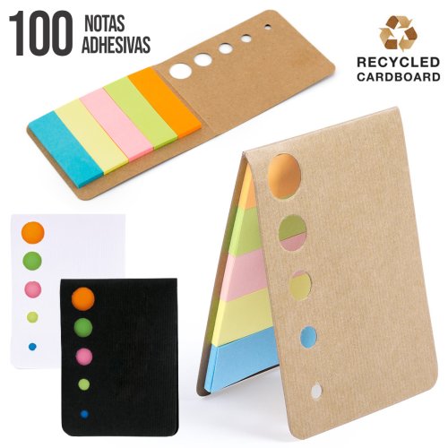 Bloc de notas adhesivas con tapa troquelada de suave tacto acabada en cartón reciclado. Con 100 mini notas adhesivas. 100 Notas Adhesivas 1,5 x 5 cm
