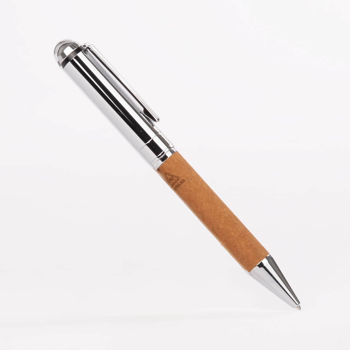 MENDOZA es el equilibrio perfecto entre elegancia atemporal y compromiso sostenible. Su cuerpo metálico con detalles cromados se envuelve en cuero reciclado (PU), aportando una textura sofisticada y una segunda vida a materiales que merecen ser reutilizados. De acción giratoria y acabado en tono marrón, este bolígrafo puede llevar tu logotipo grabado con precisión láser, incluyendo el distintivo R-PU, símbolo de su origen reciclado. MENDOZA es ideal para marcas que valoran la durabilidad, el diseño y el mensaje que transmiten al escribir.