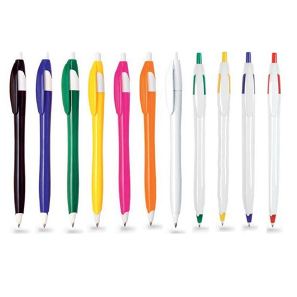 Bolígrafo de mecanismo pulsador de atrevido diseño bicolor y cuerpo curvado, de suave acabado en divertidos colores sólidos. Con clip plano a juego. Tinta azul.