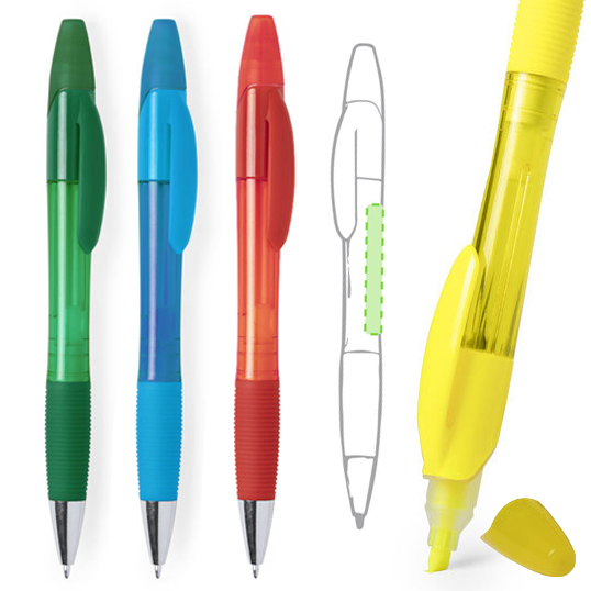 Bolígrafo con marcador de acabado frosted. De mecanismo giratorio, con color de marcador a juego y cómoda empuñadura. Disponible en variada gama de colores y en tinta azul. Marcador Incluido