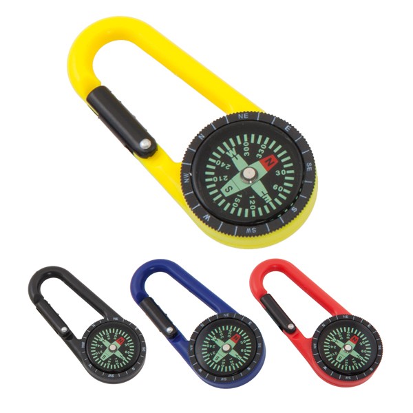 Brújula mosquetón en vivos colores con cuerpo de suave y resistente acabado.