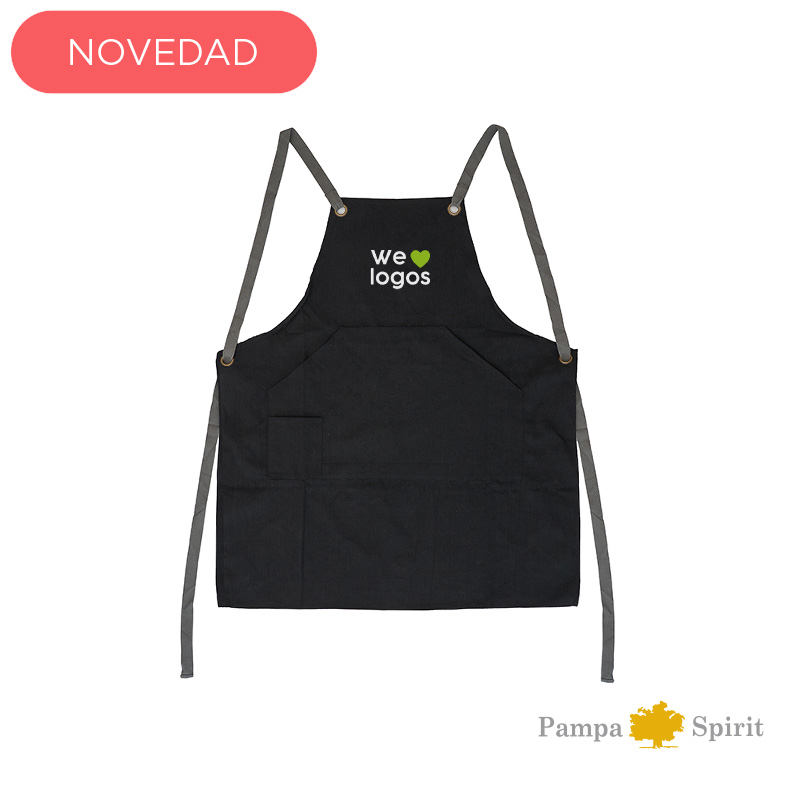 El delantal de Pampa Spirit está confeccionado en tela 50% polyester, 50% algodón. Incluye un bolsillo grande principal y un bolsillo pequeño. Cuenta con dos tiras regulables para atar en la cintura. Dimensiones: 80 cm de alto y 70 cm de ancho. Pampa Spirit.