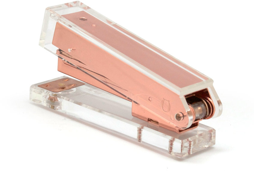 12,8 x 6 x 3,1 cm. Acrílico y metal. Engrapadora de escritorio que combina disen?o y funcionalidad para el di?a a di?a. Para broches tamaño