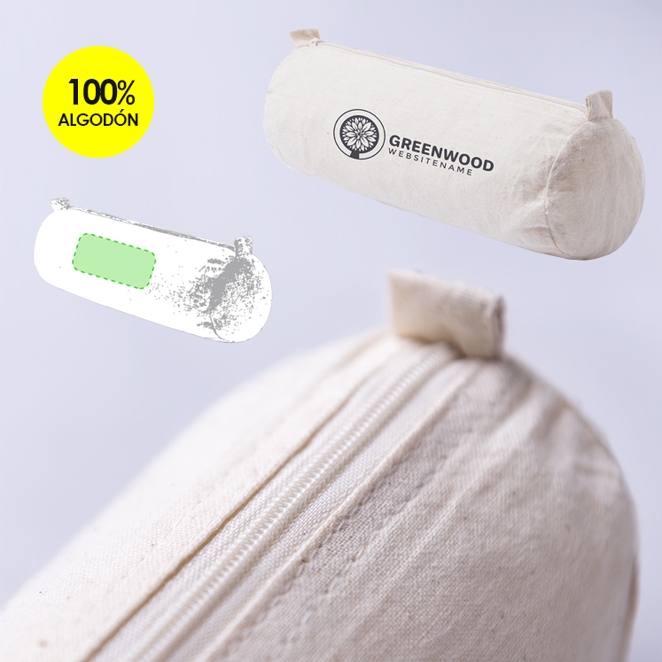 Estuche de línea nature en material 100% algodón crudo. Con clásico diseño cilíndrico, cremallera a juego y prácticas asas para fácil apertura.