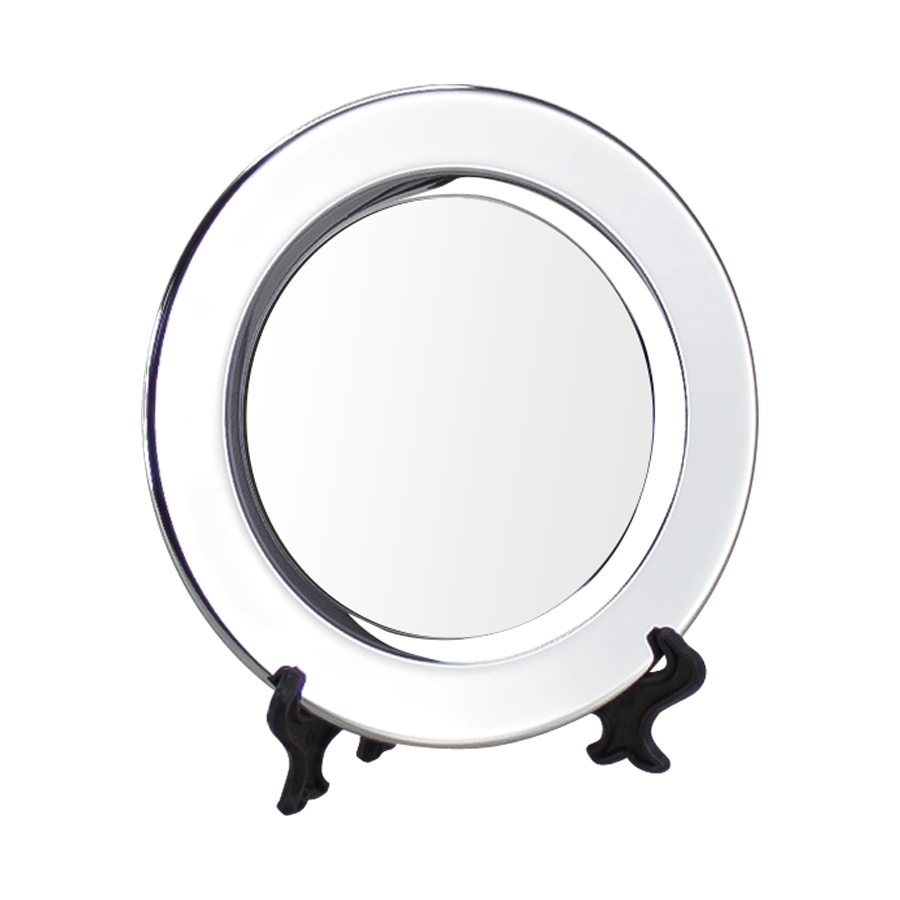 Galvano Plato de Acero inoxidable cromado tamaño pequeño, con circunferencia metálica para Sublimación. Presentación en bolsa plástica.