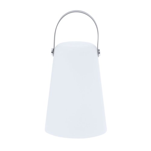 Lámpara en PE de color blanco. Incluye asa superior de suave silicona en tono gris, que facilita su transporte y añade un toque moderno al diseño. Equipada con 4 LEDs , proporciona una luz uniforme y eficiente, tanto para interiores como exteriores. Funciona con 3 pilas AA (no incluidas). Dispone de botón de encendido/apagado. 4 Ledes. 3 Pilas AA No Incluidas