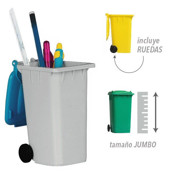 Lapicero con ruedas en forma de contenedor en variados colores y con tapa.