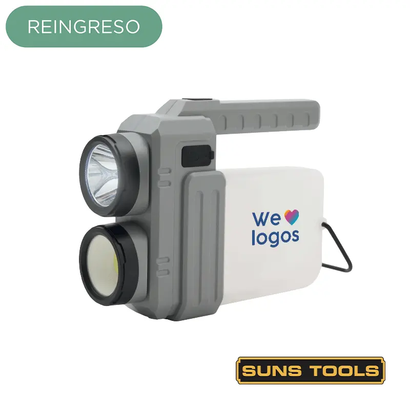 Cuenta con dos niveles de luminosidad en su modo linterna: luz alta, que brinda una iluminación potente para largas distancias, y luz baja, ideal para un ambiente tenue y funcional. Además, incorpora un panel de luz lateral en modo farol, perfecto para iluminar espacios amplios con una luz uniforme.