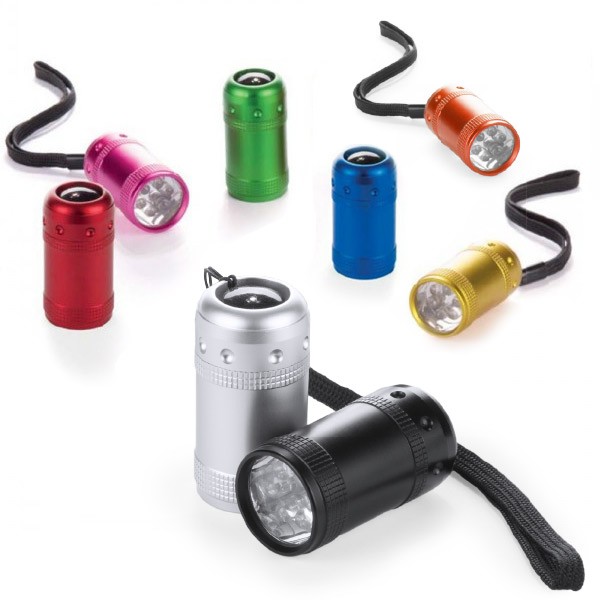 Linterna de 6 ledes de alto poder de iluminación y diseño minimalista. Con resistente cuerpo en aluminio antideslizante de variados y vivos colores brillantes, pulsador protegido con recubrimiento de resistente goma y cinta de transporte. Pilas de botón incluidas con film protector y presentada en caja individual. 6 Ledes. Pilas Botón Incluidas