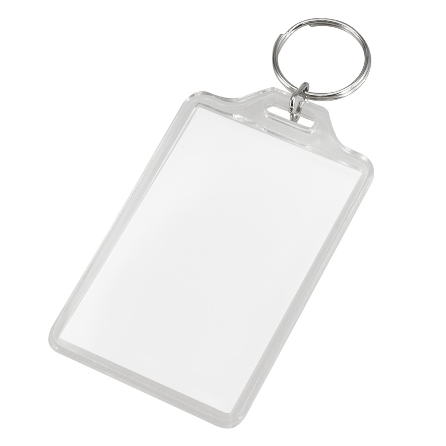 Llavero grande porta-foto de Acrílico transparente. Para insertar papel impreso en compartimento interior.