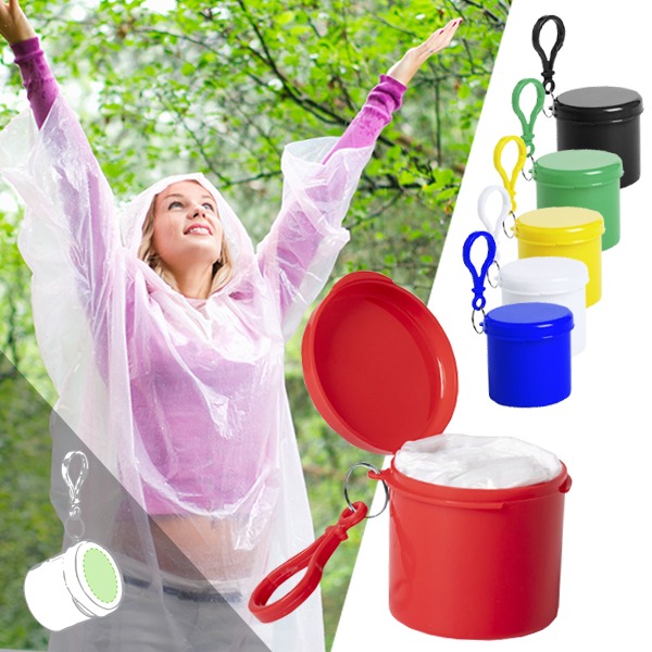 Poncho para adulto en LDPE de color blanco y acabado frosted -medidas 127x102 cm-. Presentado en estuche individual con tapa y mosquetón a juego. Estuche disponible en variada gama de colores. Talla única. Talla Única. Adulto. 127 x 102 cm