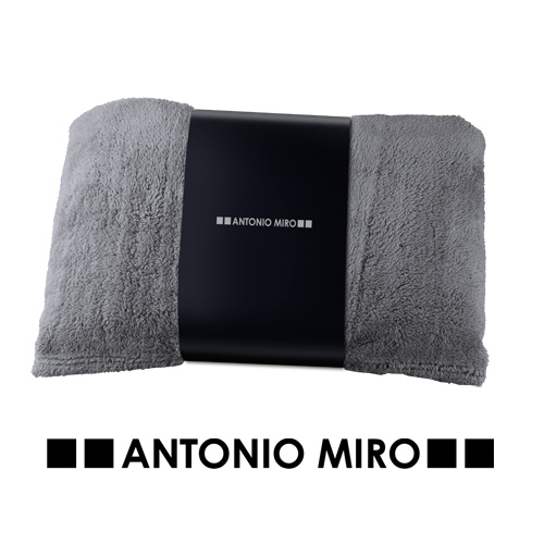 Manta de Antonio Miró de 130x160cm en suave y cálido polar fleece de 260g/m2 con tratamiento anti-pilling. De elegante diseño en tonos grises y presentada en funda con logotipo de la marca. *Para pedidos con impresión, se debe incrementar el coste del marcaje + 0,20 / unidad en concepto manipulación especial* Anti-Pilling