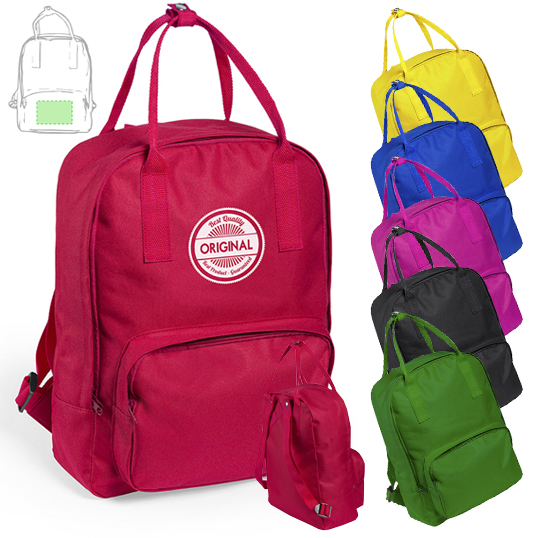 Mochila en poliéster 600D de desenfadado diseño urbano, con resistentes asas a juego, cierre de cremallera juego y bolsillo frontal.