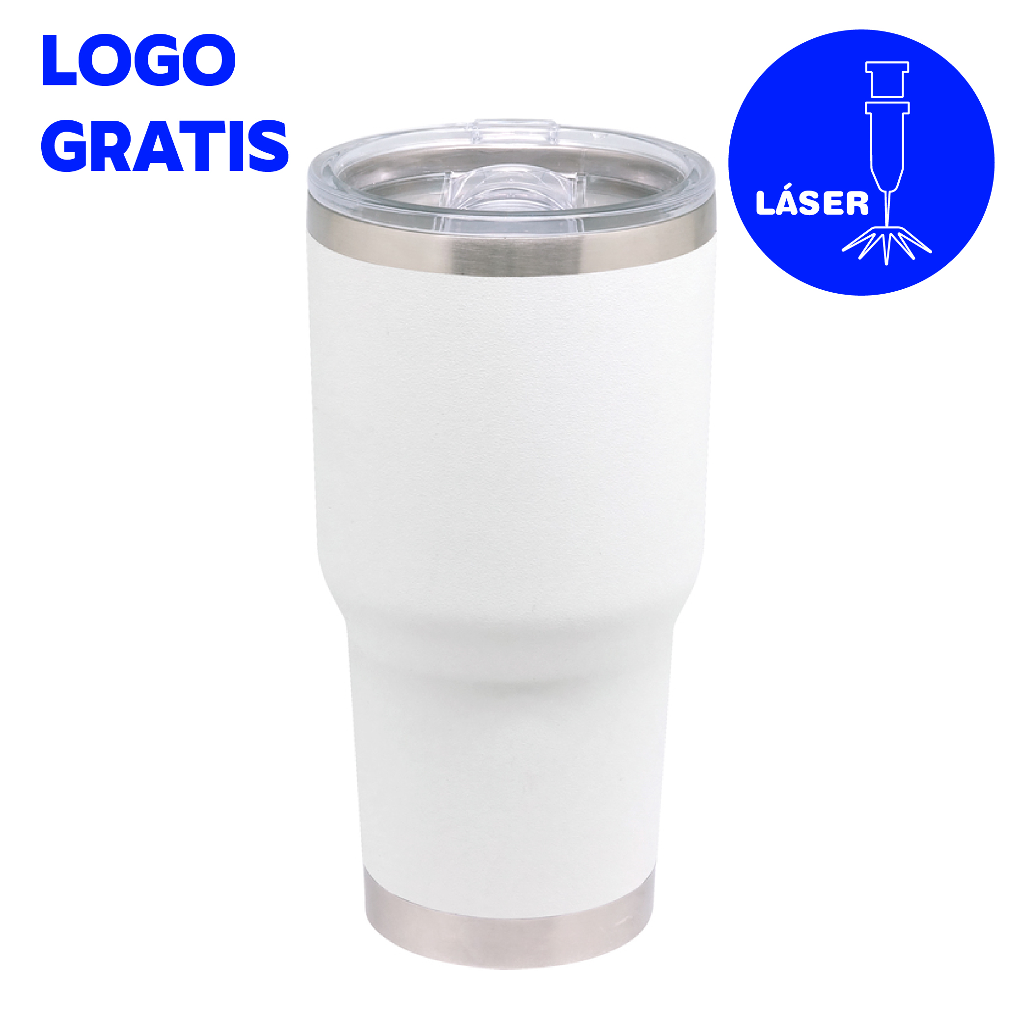 Ø 10 x 20 cm. Capacidad 850 ml. Acero Inoxidable. Mug doble pared, interior en acero 304 y exterior en acero 201. Pintura Powder Coat (pintura mas duradera y resistente a la corrosión y el paso del tiempo). Tapa plástica transparente a presión con cierre antiderrame. Mantiene las bebidas frías o calientes por más tiempo. Presentación en caja de regalo.